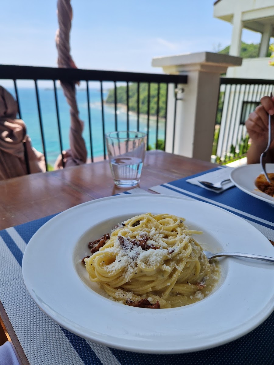 Very good restaurant located with an unique and beautiful view of Marinduque beaches! The food is related about Italian cooking, the 2 ate who served me was very nice... I recommand this restaurant for the view! For me is very expensive, but you pay for the beautiful view! I recommand this restaurant!